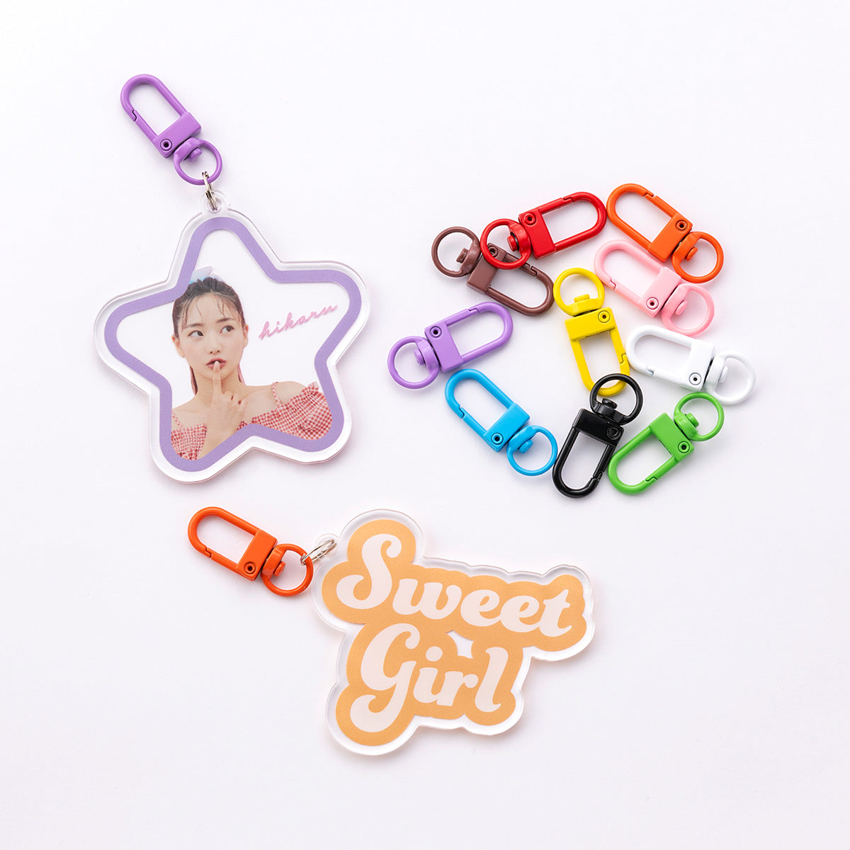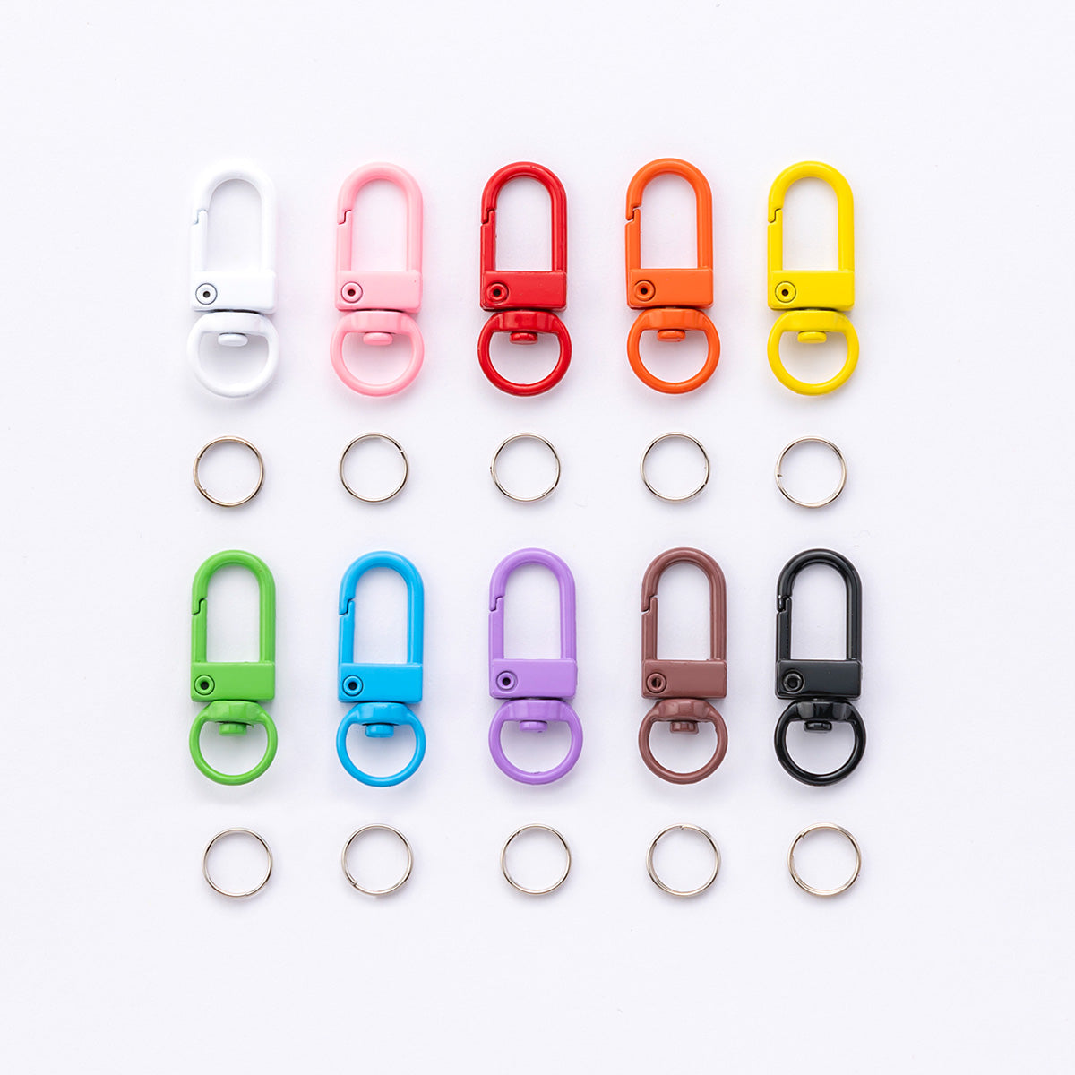 10色入りのカラフルなナスカン。コンパクトサイズで使いやすく、硬くないので取り付けが簡単。アクリルキーホルダーと合わせてぜひご利用ください。